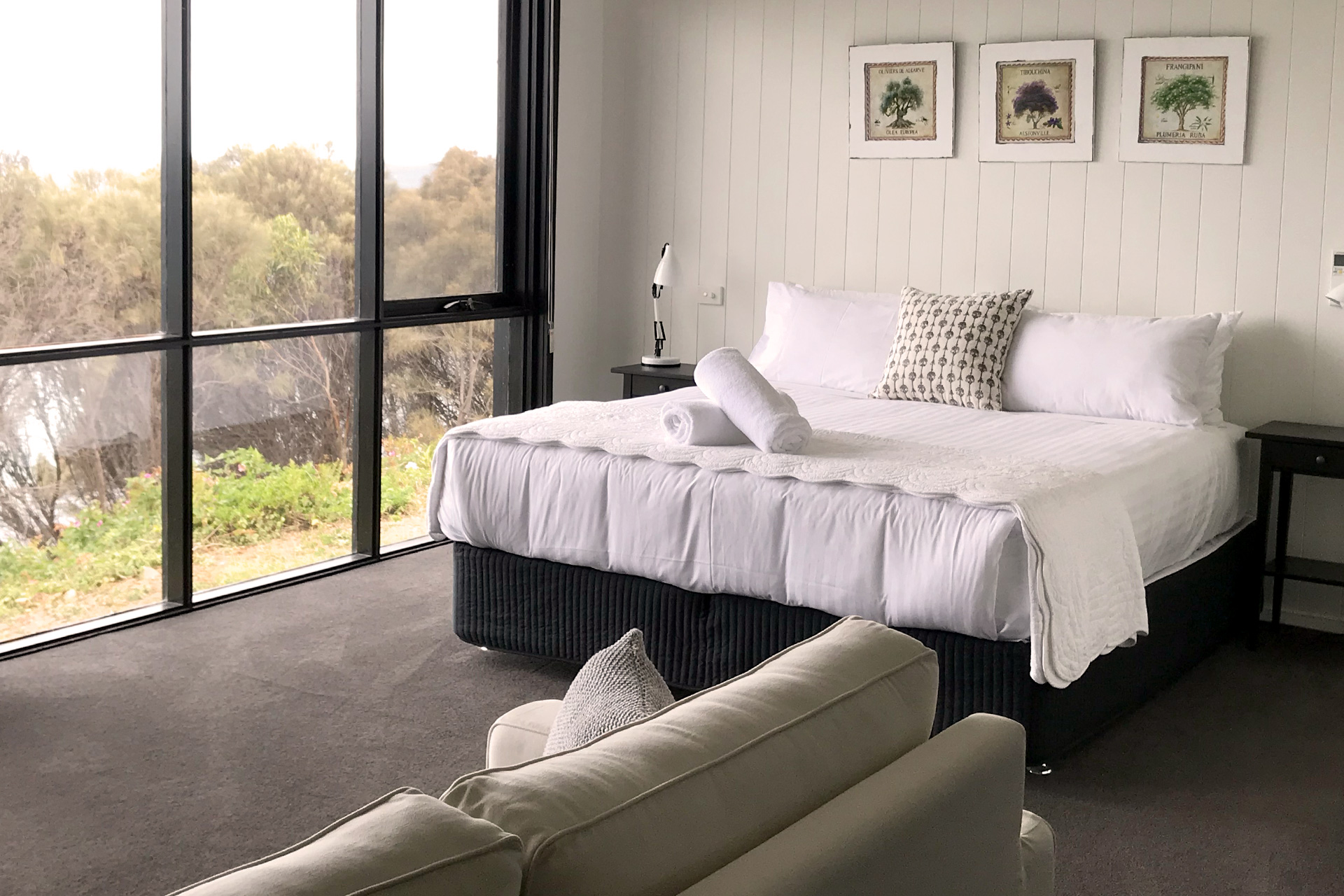 Each of the one cabins feature spectacular views, Queen-size bed, bathroom and separate lounge/dining/kitchenette.