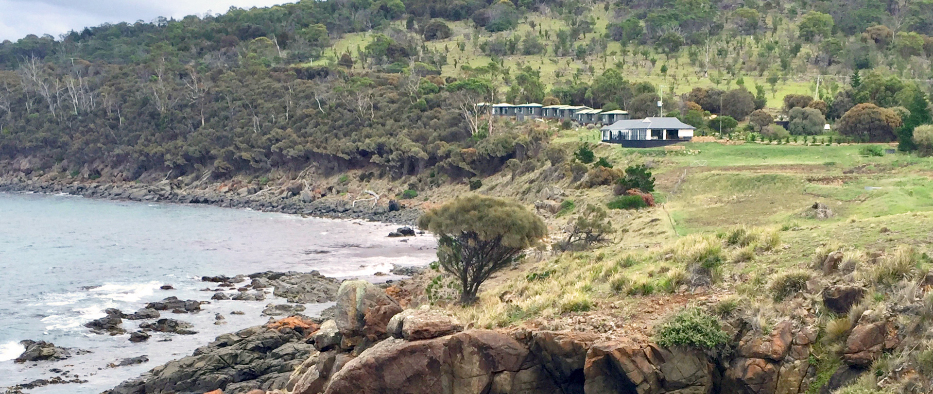Our deluxe self-contained residence and 7 comfortable cabins are perched on a 30 metre cliff overlooking the pristine waters of the Tasman Sea; with the nearest town (Swansea) being just 10 minutes’ drive north. All bedrooms enable guests to enjoy glorious water views, making for a unique Tasmanian experience.