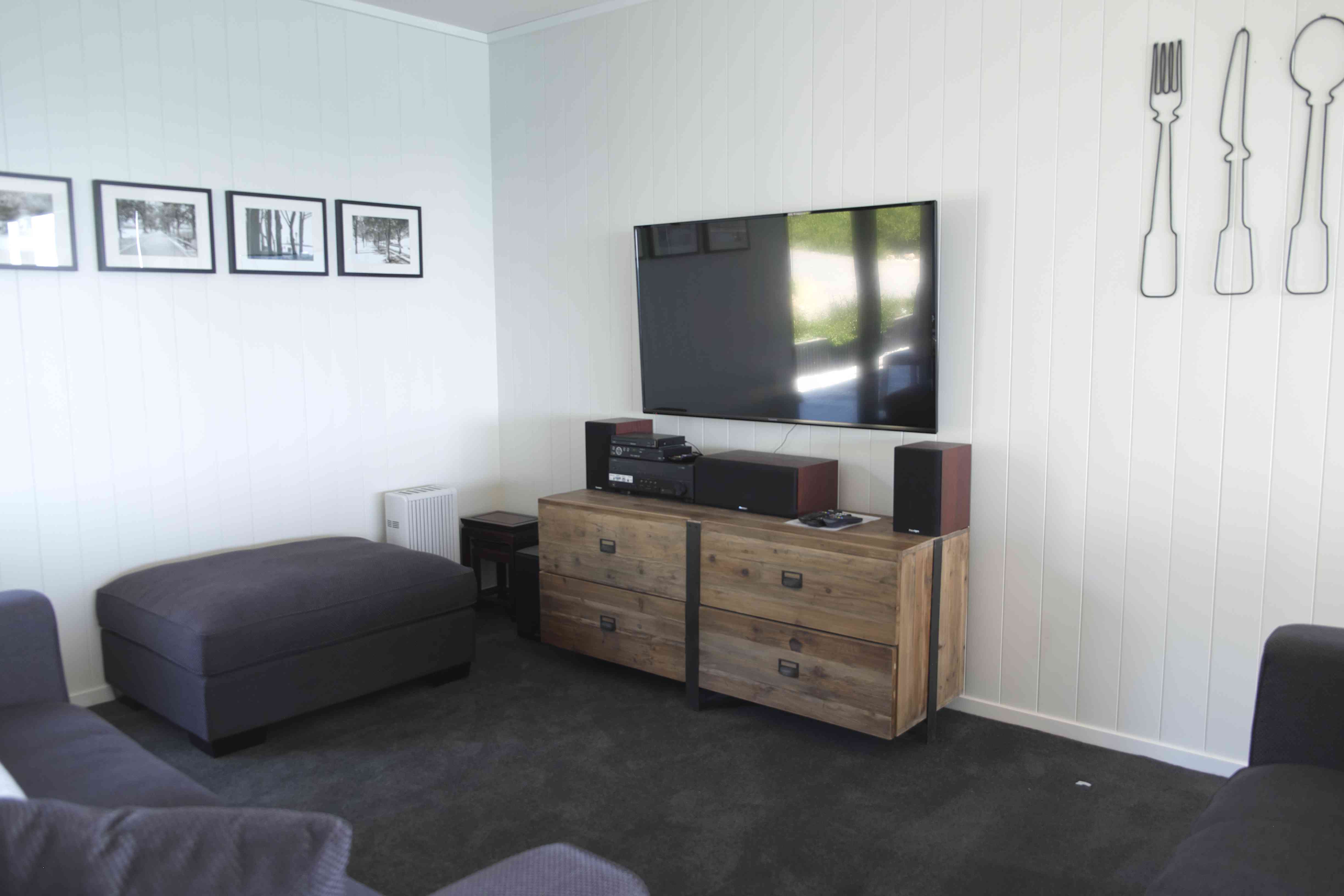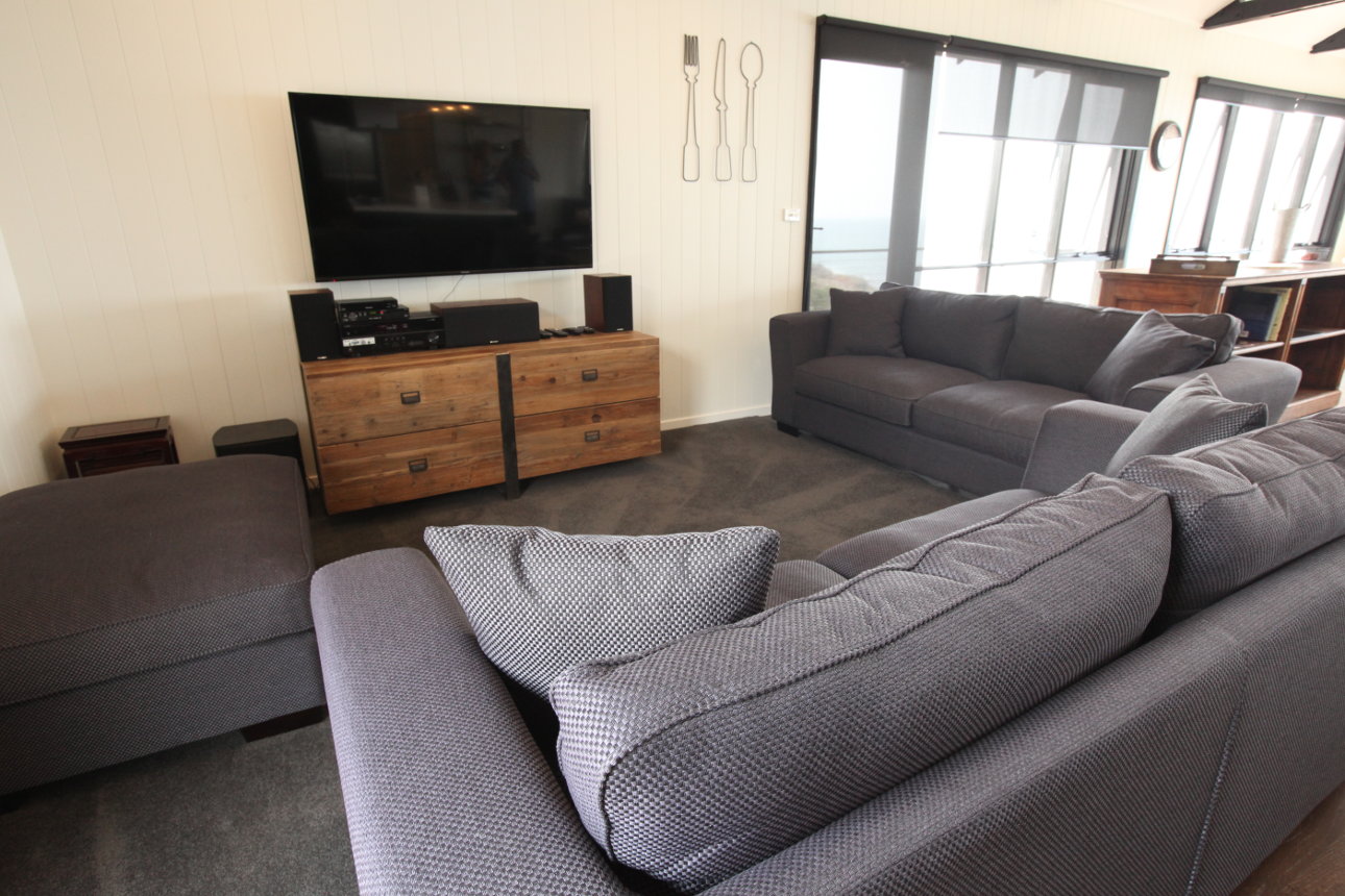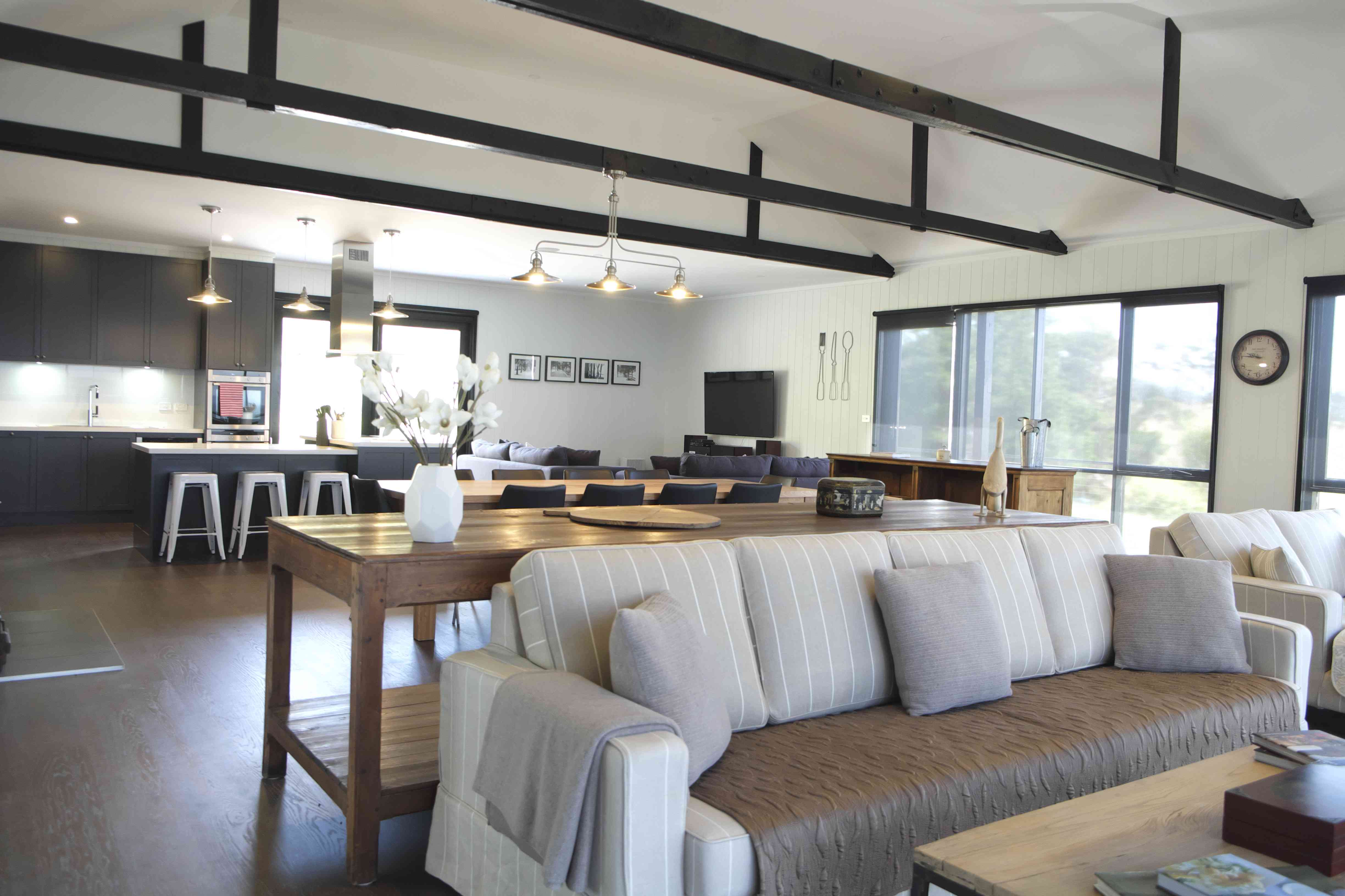 - Large open plan TV, lounge and dining area with vaulted ceilings